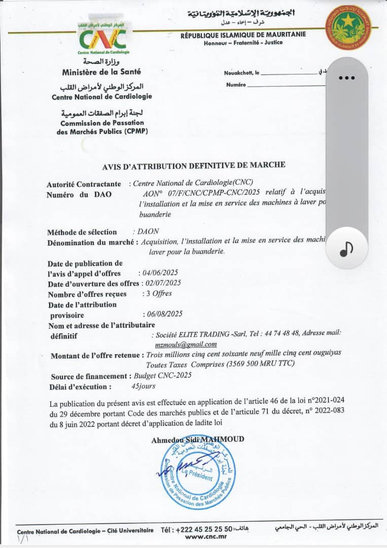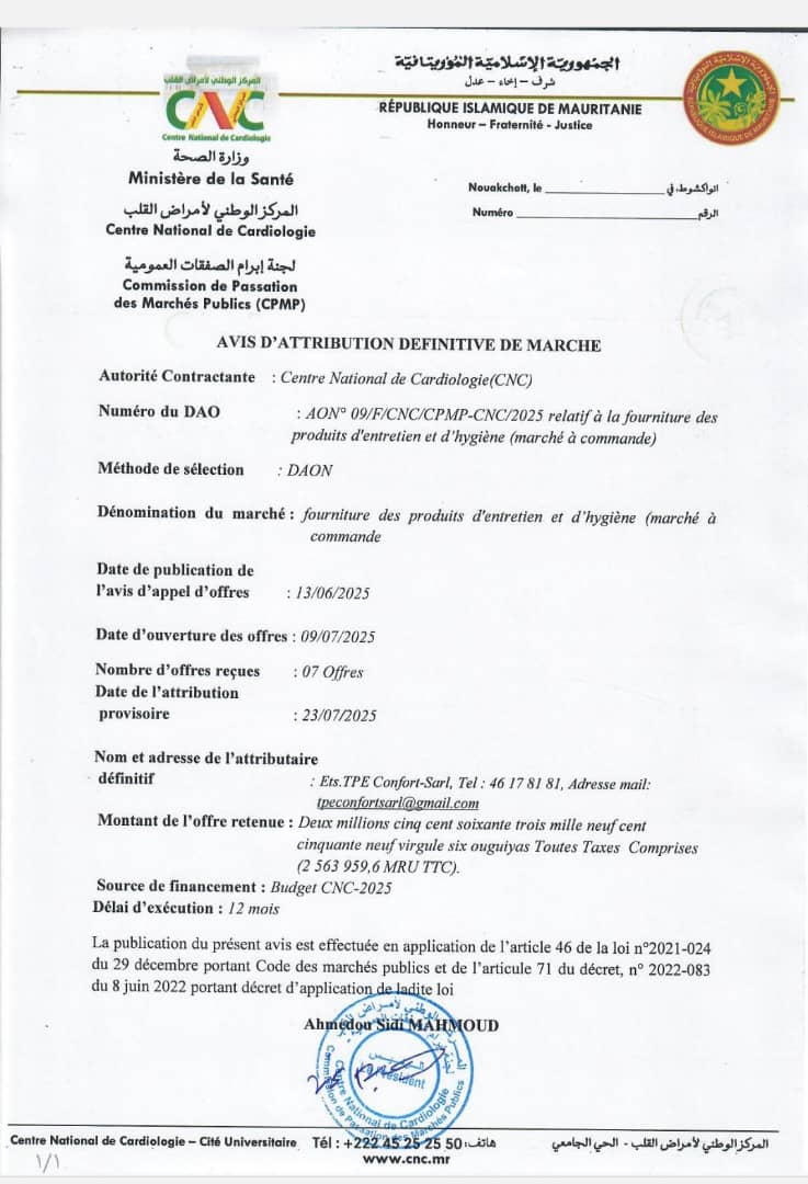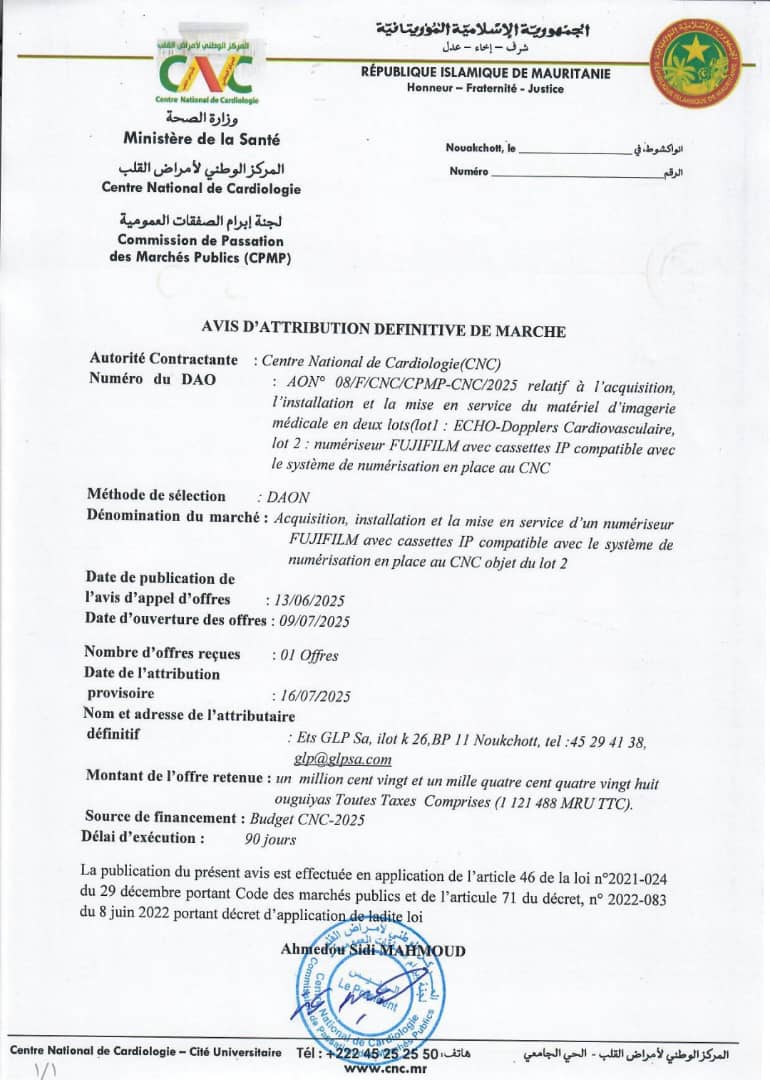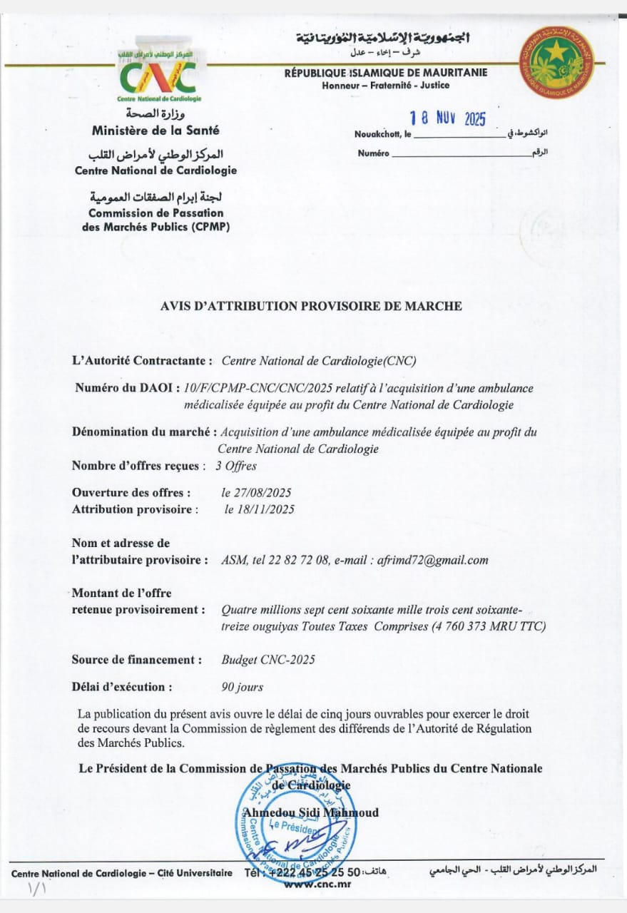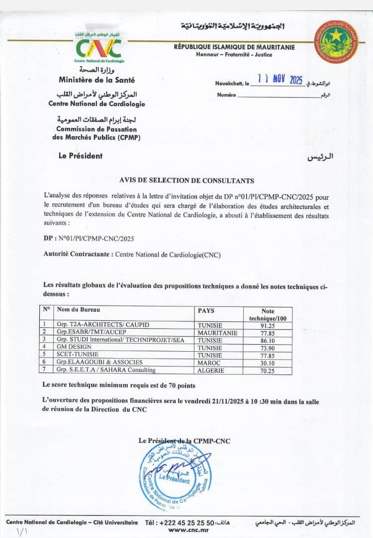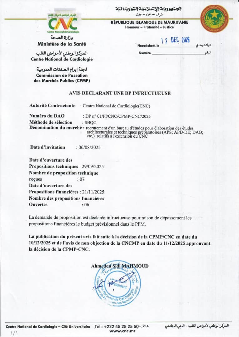18 décembre 2025 - Le Centre National de Cardiologie a annoncé le lancement d’un appel à manifestation d’intérêt (AMI) dans le cadre du projet d’extension de ses infrastructures, visant à renforcer ses capacités d’accueil et de prise en charge des patients.