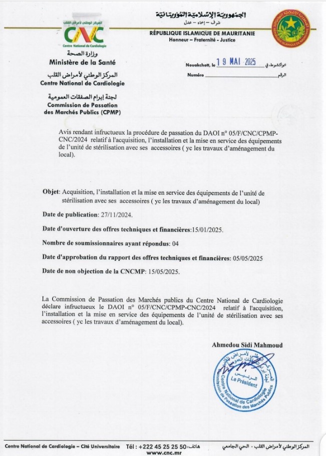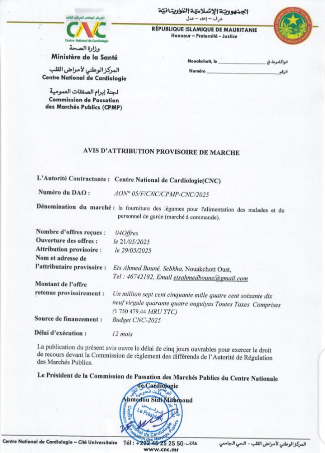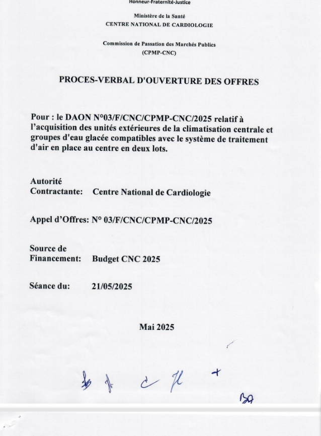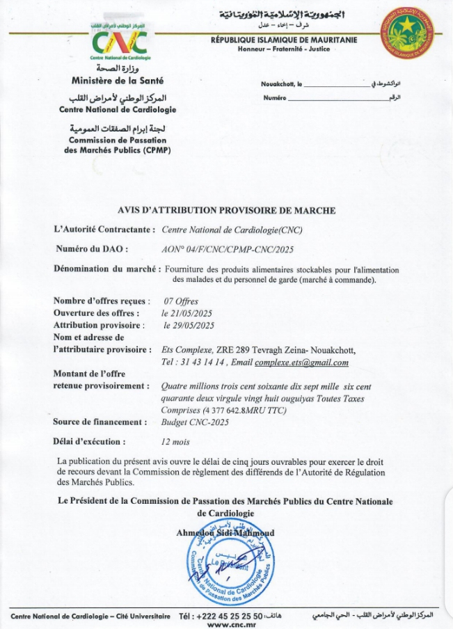 L’Autorité Contractante : Centre National de Cardiologie (CNC)