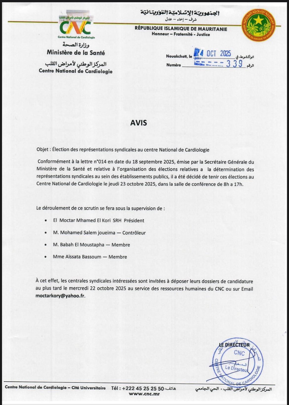 À l’occasion de la célébration de la Fête de l’Indépendance nationale, la direction du Centre National de Cardiologie a exprimé ses plus chaleureuses félicitations à l’ensemble de son personnel ainsi qu’au peuple mauritanien.