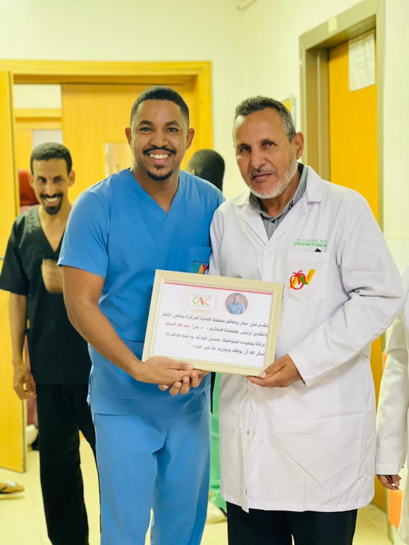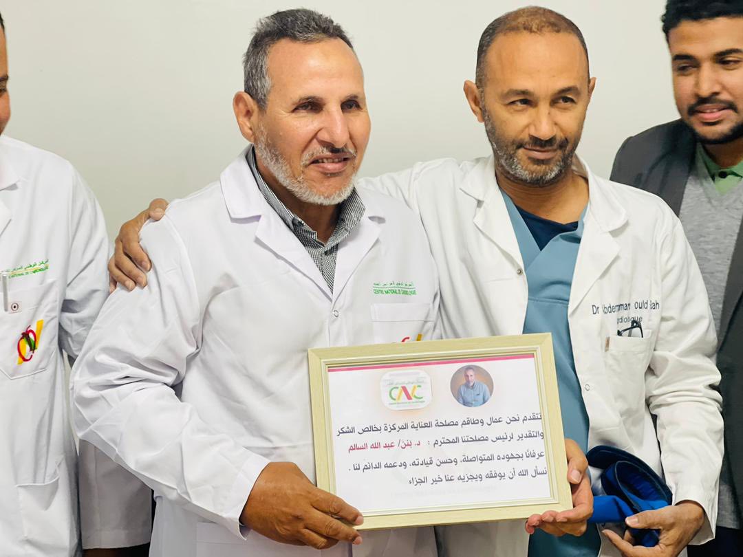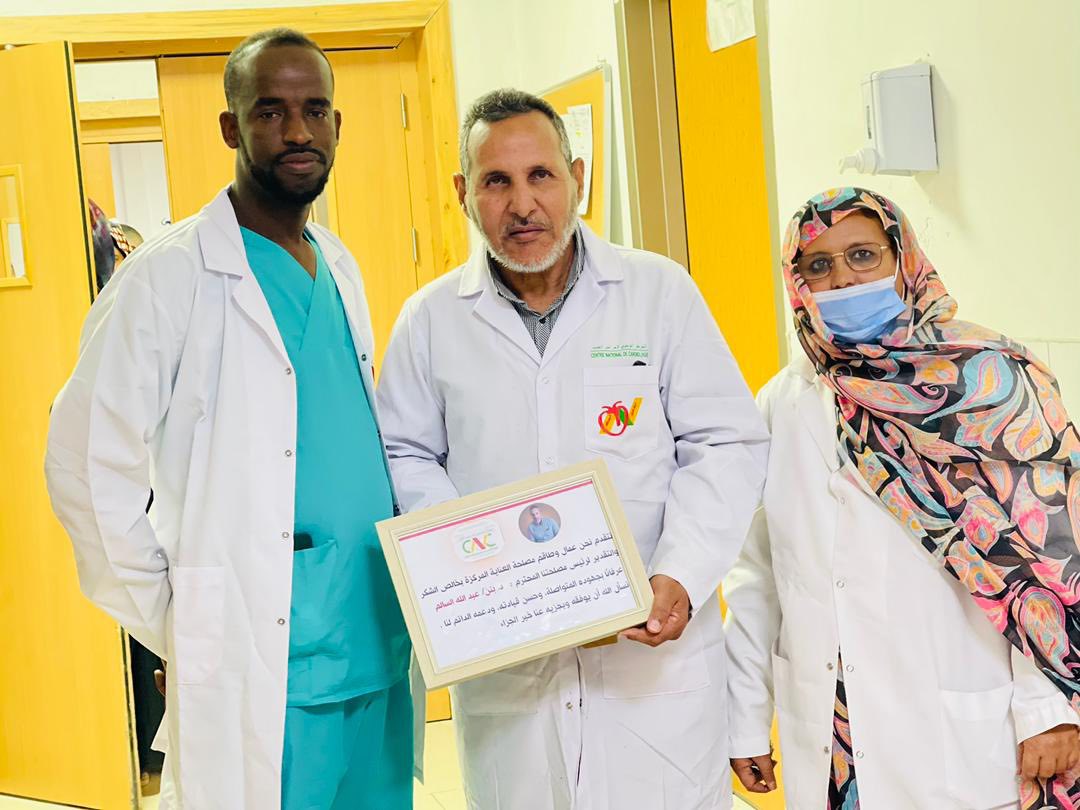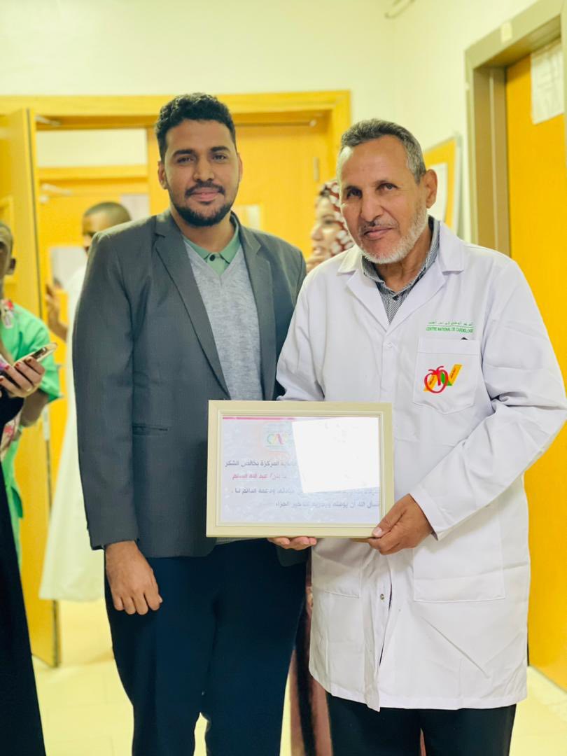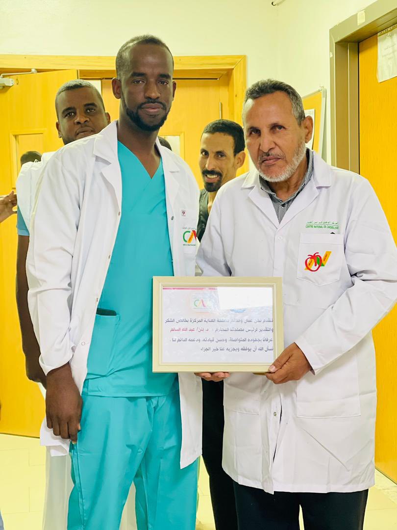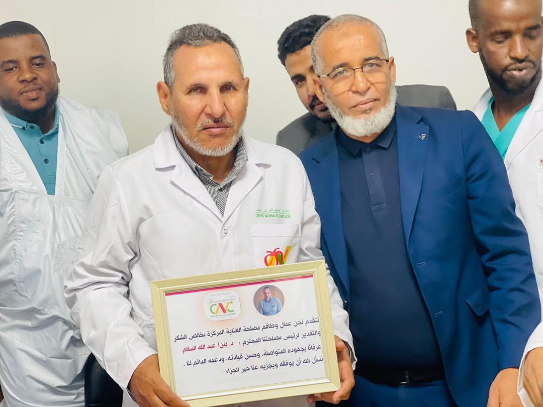 الأربعاء 31 ديسمبر 2025 ـ شهد المركز الوطني لأمراض القلب، اليوم، حفل وداع وتكريم على شرف الزميلين الدكتور بنّه أحمد سالم، رئيس مصلحة الإنعاش، والمراقب العام محمد سالم ولد اجويمع، وذلك بمناسبة استفادتهما من حق التقاعد، بعد مسيرة مهنية حافلة بالعطاء والعمل الجاد، قدّما خلالها خدمات جليلة للمركز بكل إخلاص وتفانٍ، وشهد لهما الجميع بالمثابرة والجدية والالتزام التام بالعمل.