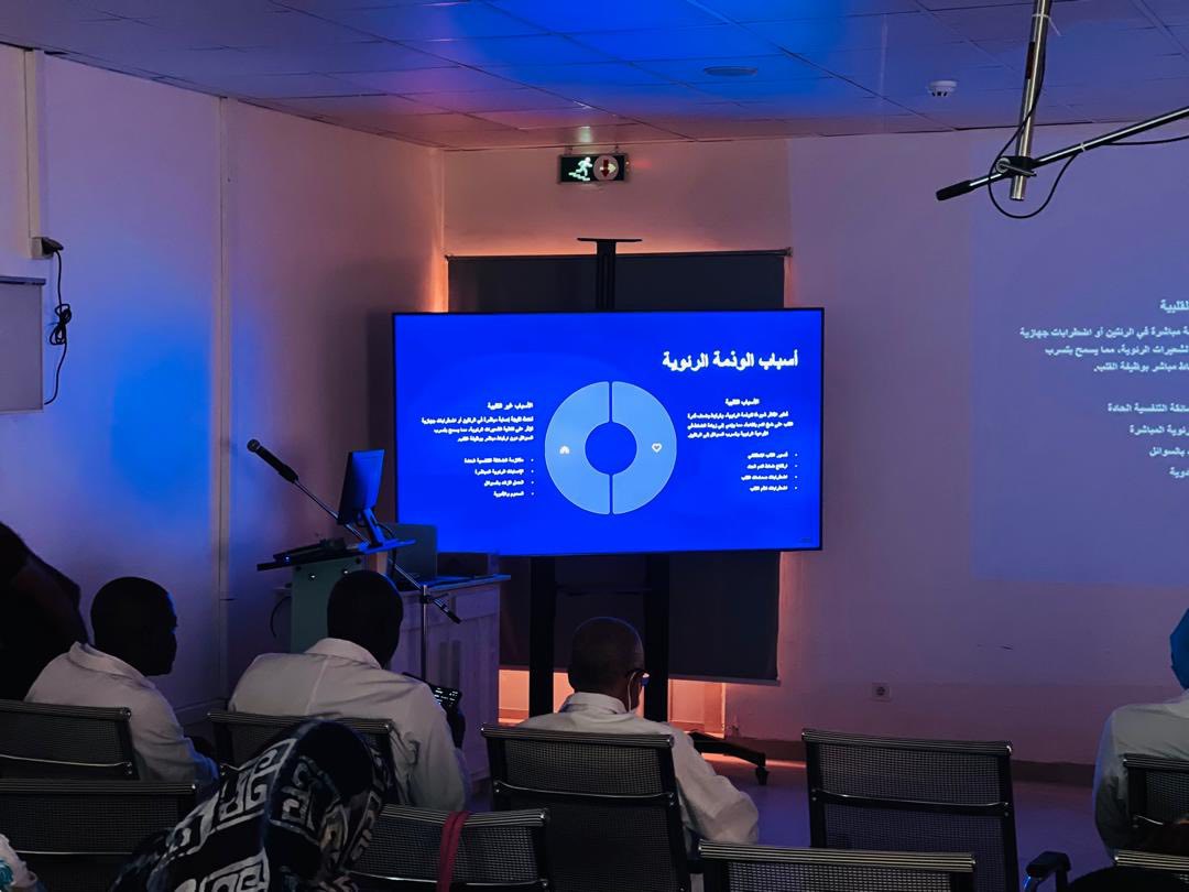 وشهدت فعاليات البرنامج تقديم ثلاث عروض علمية متخصصة، تمحورت حول تطوير مهنة التمريض وتعزيز المهارات المهنية، حيث قدّم السيد مامادو جوم، رئيس وحدة العلاجات التمريضية، عرضاً بعنوان: "تطور مهنة التمريض في موريتانيا"، تناول فيه المسار التاريخي والتحديات والآفاق المستقبلية للمهنة.