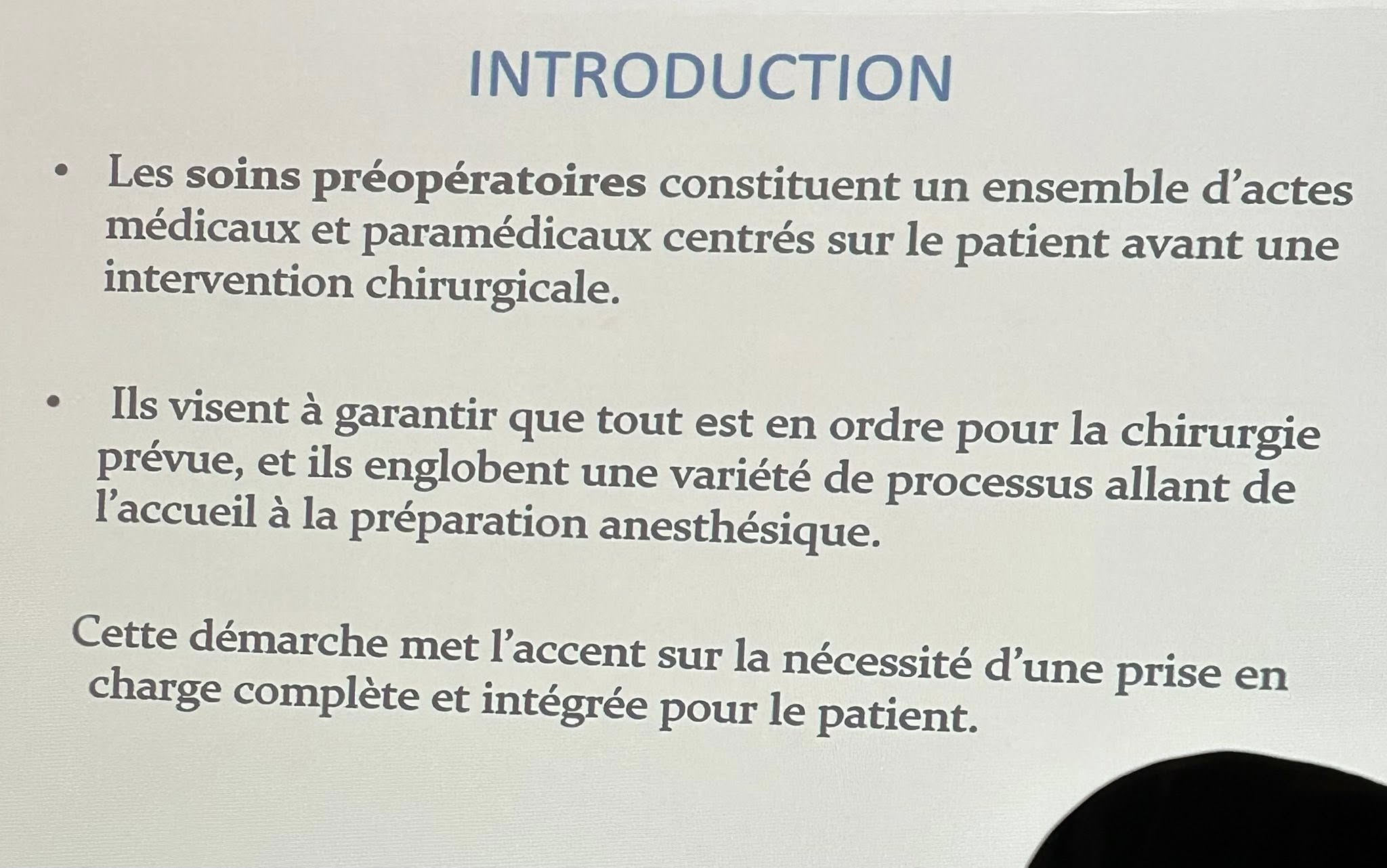 واستُهلت الجلسات بعرض أول قدّمه السيد صو عثمان باتى، تناول فيه الإجراءات التمريضية المصاحبة للعمل الجراحي، مركّزًا على الأدوار الحيوية للممرضين في كل مراحل العملية الجراحية لضمان سلامة المريض وفعالية التدخل الطبي.