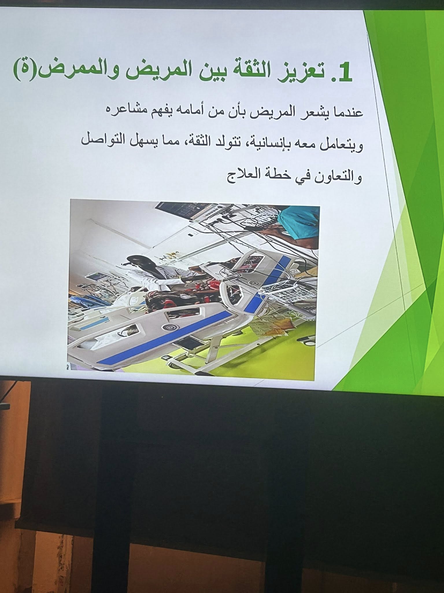 وتناول العرض الأول، الذي قدّمه الدكتور إبراهيم هماد أنكيدة، أخصائي البيولوجيا الطبية، موضوع "قواعد العمل الجيدة في أخذ عينات زرع الدم"، فيما خصص العرض الثاني، الذي قدّمه الممرض محمد سعيد بلال، لموضوع "أهمية التعاطف والاستماع في العناية التمريضية".